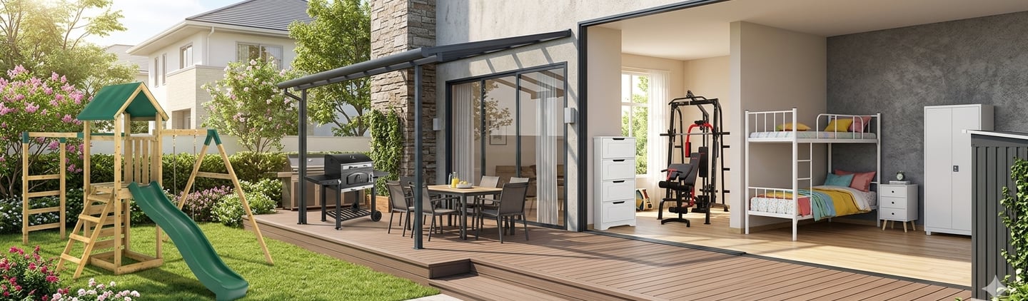 Children's Garden Equipment - Cabinets - Wood or Metal - BBQ's - Gym Equipment - Garden Sheds - Bed Frames - Gazebos and Awnings - Patio Furniture